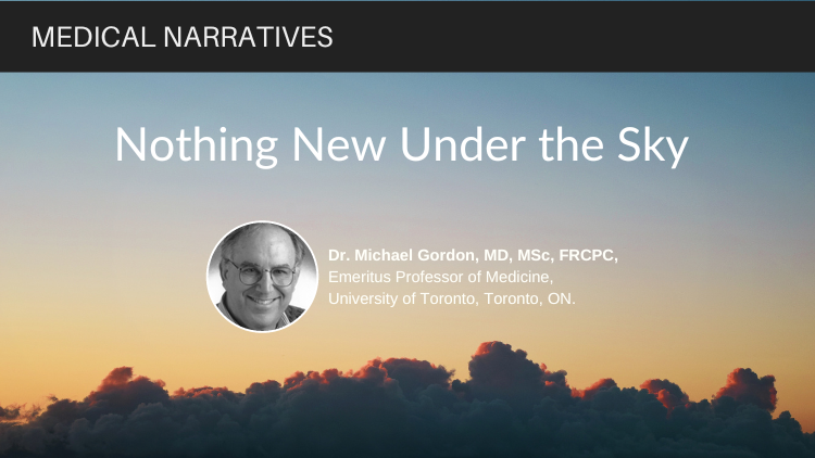 One of the advantages of aging, is having a time-line perspective that often scans decades and various upheavals or dramatic changes in human history. Related Terms: Medical Narratives Sign inSubscribe Disclaimer: Disclaimer at the end of each page