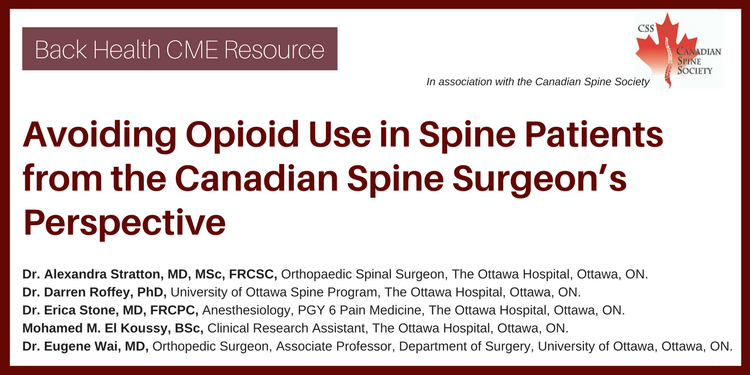 The Canadian Spine Surgeon’s Perspective: Avoiding Opioid Use in Spine Patients
